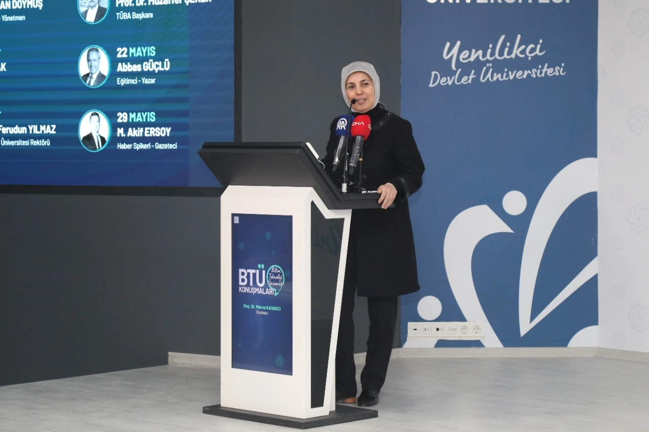 BURSA (İGFA) - Bursa Teknik Üniversitesinde öğrencileri alanında uzman isimlerle buluşturan BTÜ Konuşmaları’nın ikinci sezonu başladı. Sezonun ilk konuğu ise Büyükelçi Doç. Dr. Merve Kavakcı oldu. Mimar Sinan Yerleşkesi Turkuaz Salon’da gerçekleştirilen “Değişen Jeopolitikte Değişmeyenler: Bir 28 Şubat Okuması” başlıklı programa; BTÜ Rektörü Prof. Dr. Naci Çağlar, Bursa Büyükşehir Belediye Başkan Vekili Halide Serpil Şahin, Yıldırım Belediye Başkanı Oktay Yılmaz, Yıldırım Kaymakamı Metin Esen, Gürsu Kaymakamı Naif Yavuz, akademik ve idari personel ile öğrenciler katıldı. 28 Şubat dönemine atıfta bulunan Kavakcı, üniversite kampüsünde başörtülü bir şekilde rahatça dolaşabiliyor olmanın çok kıymetli olduğunu, bu durumun önceki nesiller tarafından sıradan olarak kabul edilmediğini söyledi. Amerika’da 11 Eylül saldırılarının yaşandığı yıllarda Türkiye’nin ise 28 Şubat sürecinden geçtiğini ifade eden Kavakcı, bu olayların dünya ve Türkiye siyasetini değiştirdiğini anlattı.