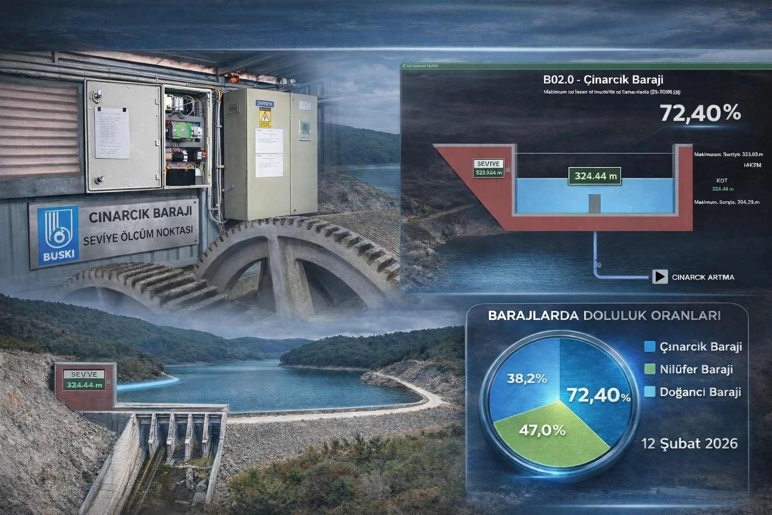 BUSKİ’ye bağlı çalışan ve bir tesise veya işletmeye ait tüm birimlerin otomatik kontrolü ve gözlenmesi sağlayan SCADA Merkezi’yle 1000’den fazla tesisi izleyip yöneten Büyükşehir Belediyesi, kentin uzun yıllar içme suyu ihtiyacını karşılayacak olan Çınarcık Barajı’nı da sisteme entegre etti.