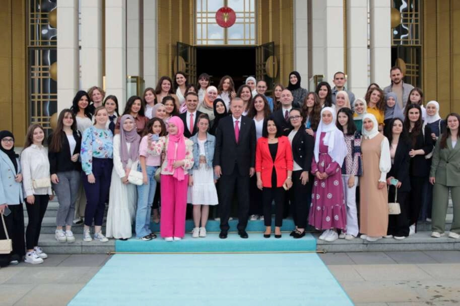 ANKARA (İGFA) - Cumhurbaşkanı Recep Tayyip Erdoğan, Sırbistan'ın Sancak bölgesinde bulunan Novi Pazar Türk Kültür Merkezi öğrencilerini, Cumhurbaşkanlığı Külliyesi'nde kabul etti.