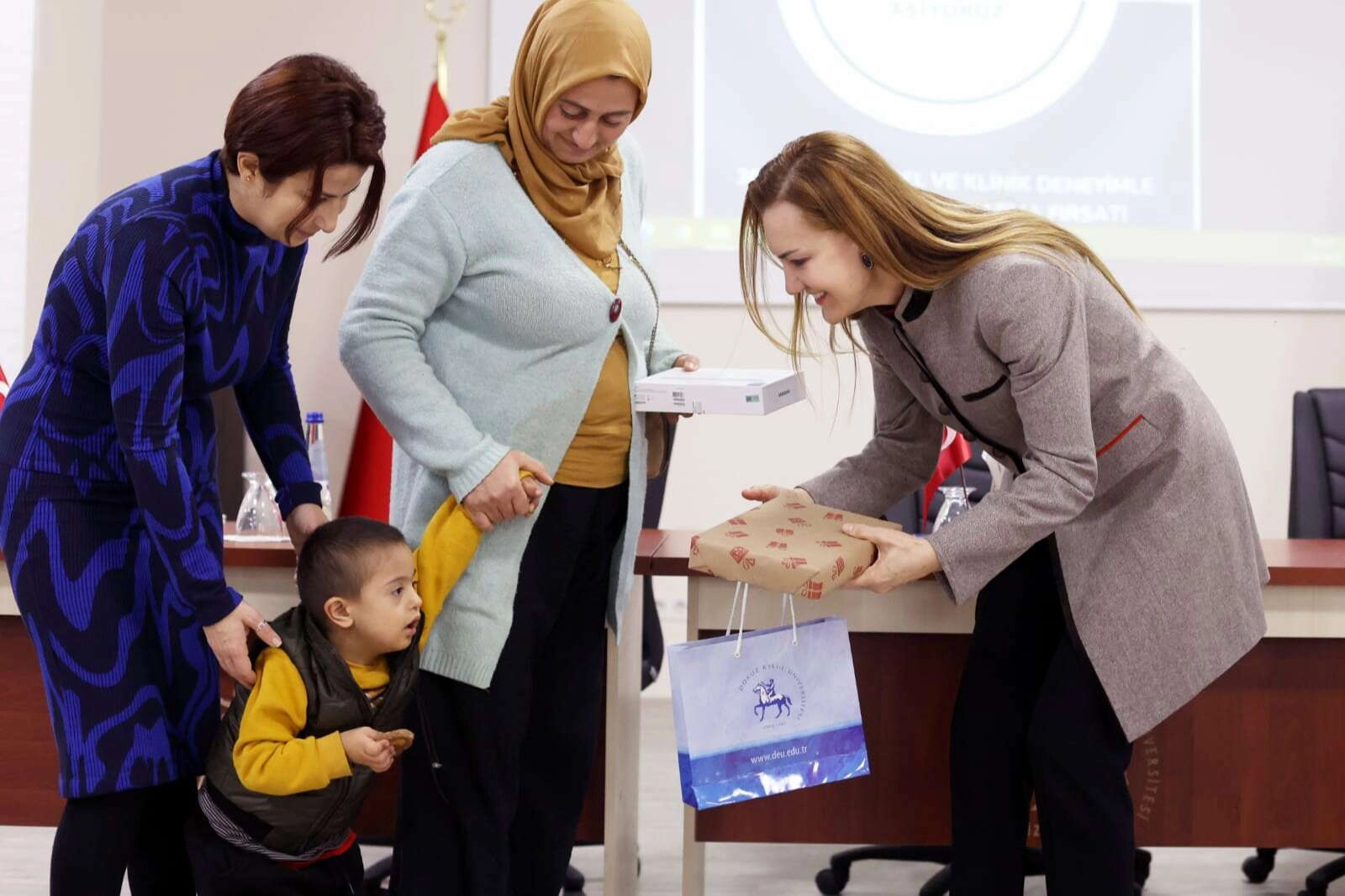 Türkiye’nin köklü yükseköğretim kurumlarından Dokuz Eylül Üniversitesi (DEÜ), Kiraz Belediyesi ve Kiraz Kaymakamlığı iş birliğinde anlamlı bir sosyal sorumluluk projesini daha hayata geçirdi. Üniversitenin Fizik Tedavi ve Rehabilitasyon Fakültesi koordinesinde, özel gereksinimli bireylerin aile fertlerinin yaşam kalitesini artırmayı hedefleyen “Mutlu Ebeveyn Mutlu Çocuk için Mesafeleri Aşıyoruz” adlı proje, bilimsel ve klinik deneyimli fizyoterapistler eşliğinde evde egzersiz yapma fırsatı sunacak. Kiraz’daki DEÜ Veteriner Fakültesi Konferans Salonu’nda gerçekleşen proje tanıtım toplantısına; DEÜ Rektörü Prof. Dr. Nükhet Hotar, Kiraz Kaymakamı Onur Titiz, Kiraz Belediye Başkanı Saliha Özçınar Kutlu, DEÜ akademik ve idari kadrosu ile aileler katıldılar.