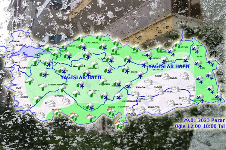 Marmara'nın doğusu, İç Ege, Akdeniz, İç Anadolu, Karadeniz ile Doğu ve Güneydoğu Anadolu'nun yağışlı geçeceği tahmin edilirken, yağışların; genellikle yağmur, İç Anadolu'nun doğusu, Batı ve Doğu Karadeniz'in iç kesimleri ile Doğu Anadolu'da karla karışık yağmur ve kar şeklinde olması bekleniyor.