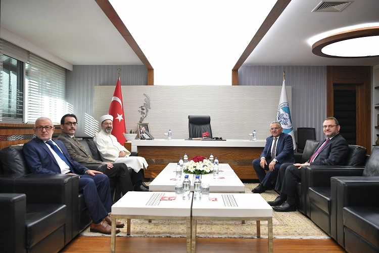 Başkanlık makamında geçen ziyarette Başkan Büyükkılıç ile Prof. Dr. Erbaş, sıcak ve samimi bir ortamda görüş alış verişinde bulundu.