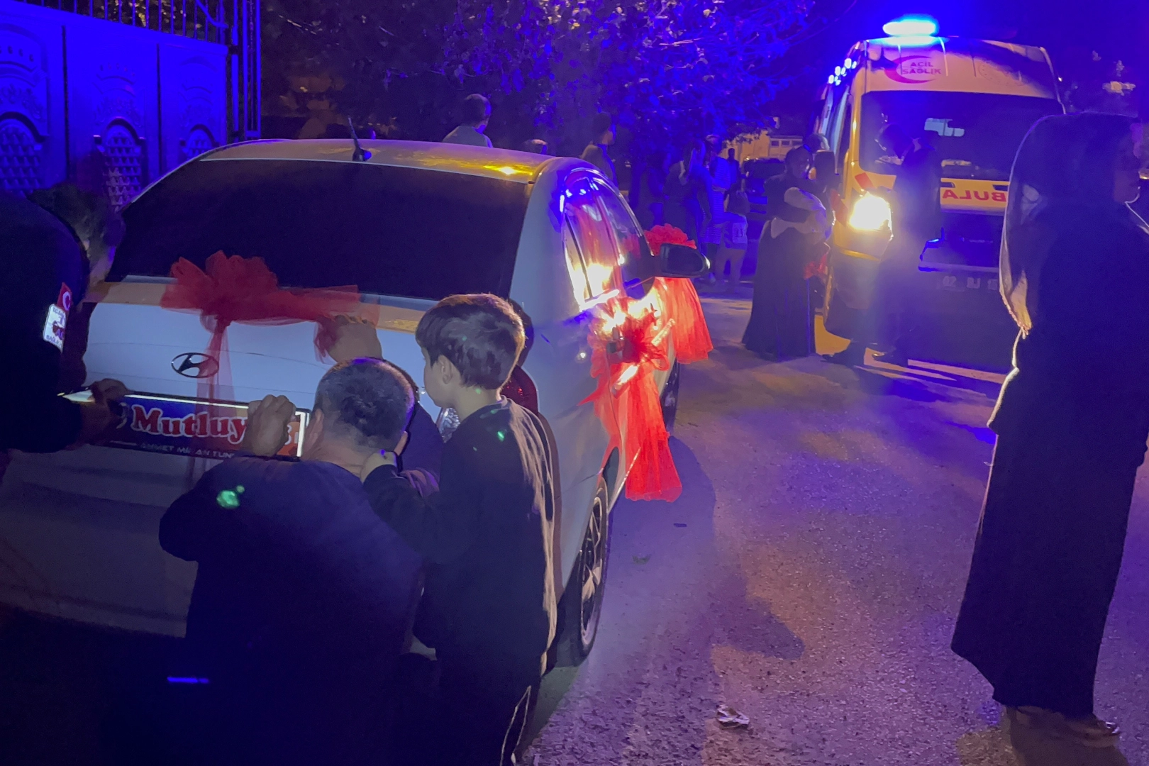 Yaşanan kazanın şokunda olan gelin gözyaşlarına boğuldu.
