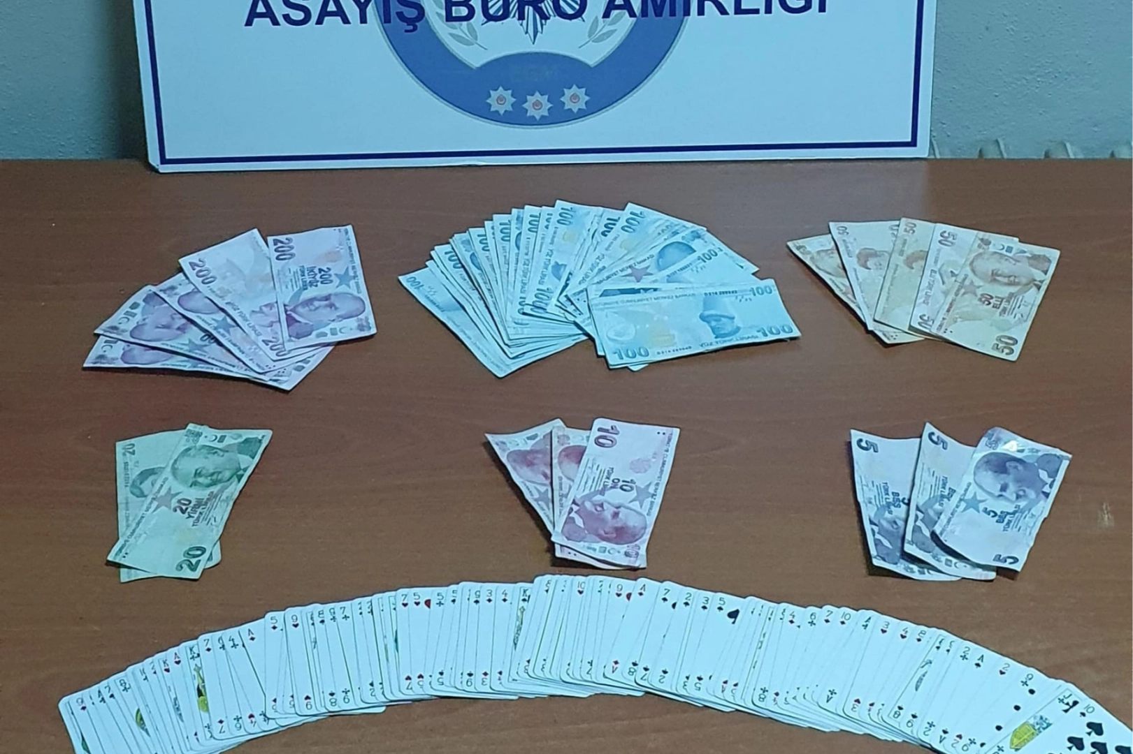 Yapılan kontrollerde toplam 4 bin 335 TL ve 104 adet iskambil kağıdı ele geçirildi.