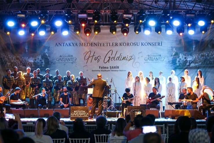 Antakya Medeniyetler Korosu konseri yaklaşık 1 buçuk saat sürdü. Konserin sonunda Gaziantep Büyükşehir Belediyesi Başkan Vekili Erdem Güzelbey, günün anısına şef Yılmaz Özfırat’a çiçek verdi.