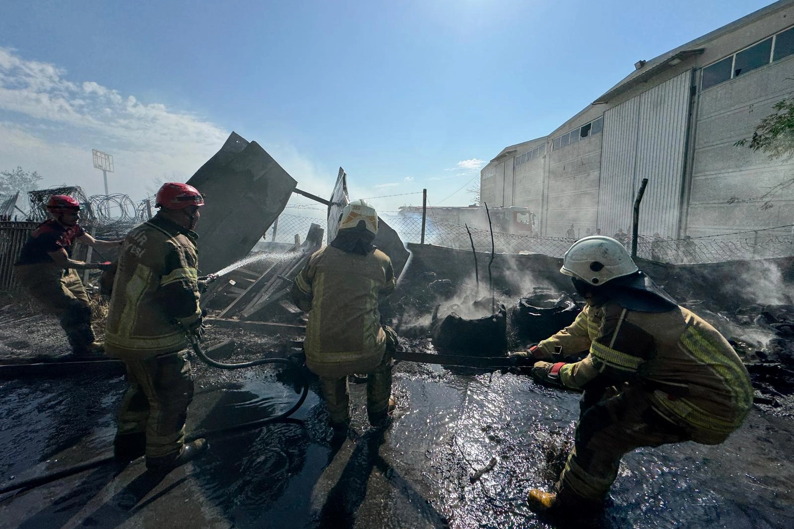 İZMİR (İGFA) - İzmir Çanakkale Yolu Fatih Mahallesi Helvacı Kavşağında bulunan bir lastik deposunun çevresinde başlayan yangın İzmir Büyükşehir Belediyesi İtfaiye ekipleri tarafından işletmeye sıçramadan söndürüldü.