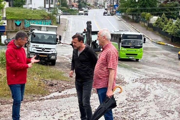 KOCAELİ (İGFA) - İzmit Belediyesi Fen İşleri Müdürlüğü ekipleri, hafta sonları da vatandaşlara hizmet götürmeye devam ediyor. Bu kapsamda sabah saatleri itibariyle başlayan ve şiddetini arttırarak devam eden yağmur dolayısıyla harekete geçen ekipler toprak kaymalarına müdahale etti.