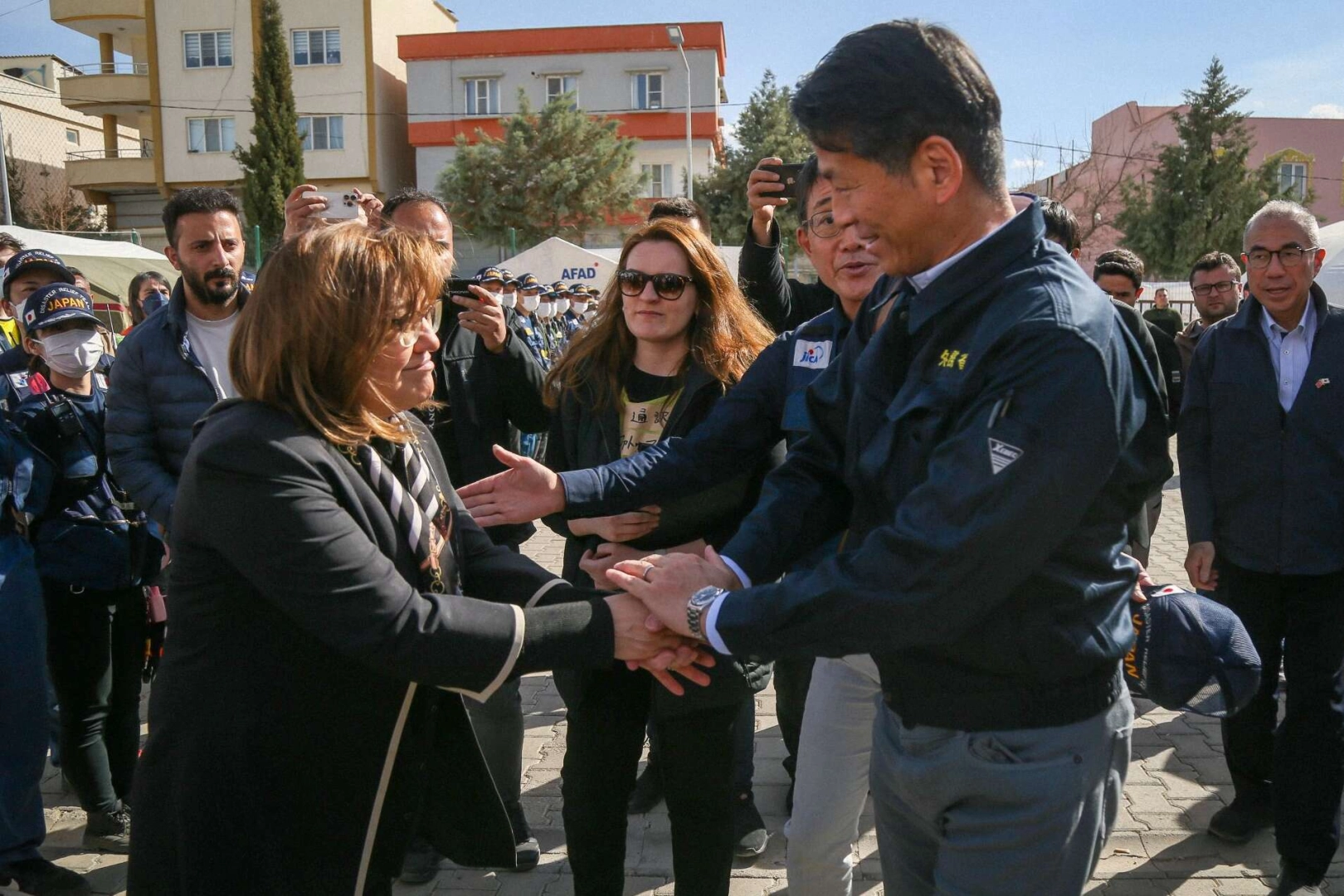 GAZİANTEP (İGFA) - Japonya Dışişleri Bakan Yardımcısı Yamada Kenji'nin Büyükşehir Belediye Başkanı Fatma Şahin ile birlikte ziyarette, Oğuzeli Mesleki ve Teknik Anadolu Lisesi bahçesinde kurulan sahra hastanesindeki ameliyathane, doğumhane, ortopedi, kadın doğum, laboratuvar ve yoğun bakım ünitesinin yer aldığı bölümleri gezerek yetkililerden bilgi aldı.