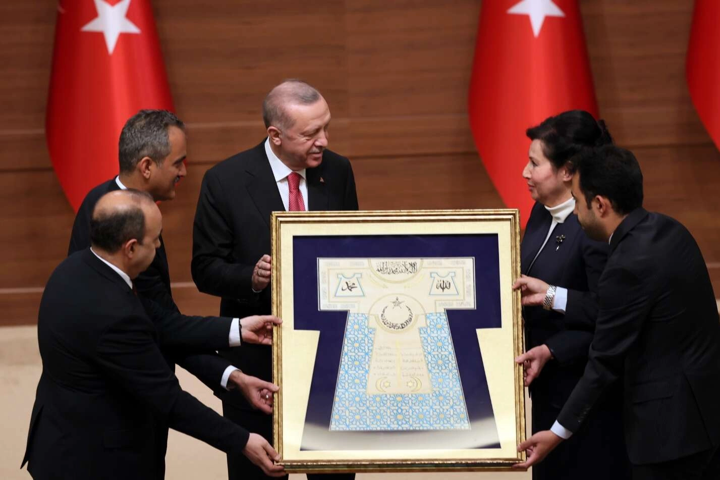 Cumhurbaşkanı Erdoğan, törene katılan TBMM Başkanı Mustafa Şentop, Yargıtay Başkanı Mehmet Akarca ve Kamu Görevlileri Etik Kurulu üyeleriyle fotoğraf çektirdi.