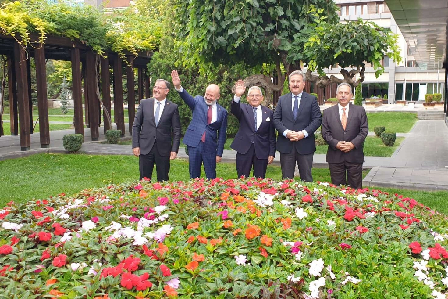 Başkanlar, Büyükşehir Belediyesi bahçesinde bir süre sohbet edip, günün anısına hatıra fotoğrafı da çektirdi.