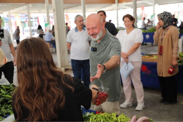 Sonrasında ise hem üreticiyle hem de alışveriş yapan bölge sakinleriyle yakından ilgilenen Başkan Çolakbayrakdar, onların yoğun sevgisiyle karşılaştı.