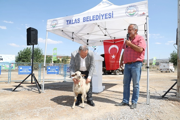 Programda ayrıca Talas Belediyesinin Ali Dağı’nda bulunun mini hayvan çiftliği için Başkan Yalçın’a lagun cinsi bir kuzu hediye edildi.