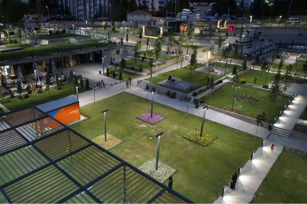 Türkiye’nin dört bir yanından mimarların katıldığı yarışma sonucunda ortaya çıkan proje ile yeniden düzenlenen ve Şeffaf Oda’dan Genç Ofise, Selçuklu Bilgi ve Kültür Evi’nden ATM’ler ve amfi tiyatro ile fatura ödeme noktasına kadar çok sayıda fonksiyonel bölümün yer aldığı meydan, kullanıcılardan da büyük beğeni aldı.
