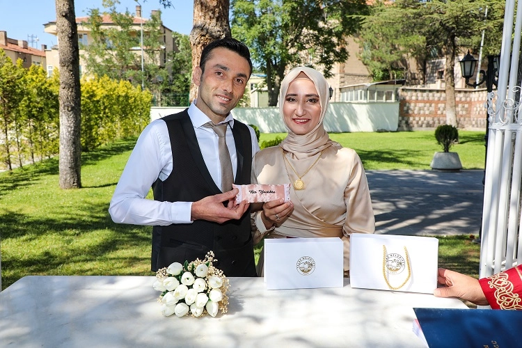 Hayatlarının en önemli imzalarını Talas Belediyesi Nikah Salonu’nda atan genç çiftler, mutluluklarını ifade ederken Başkan Yalçın’ın anlamlı hediyesinden duydukları memnuniyeti dile getirdi.