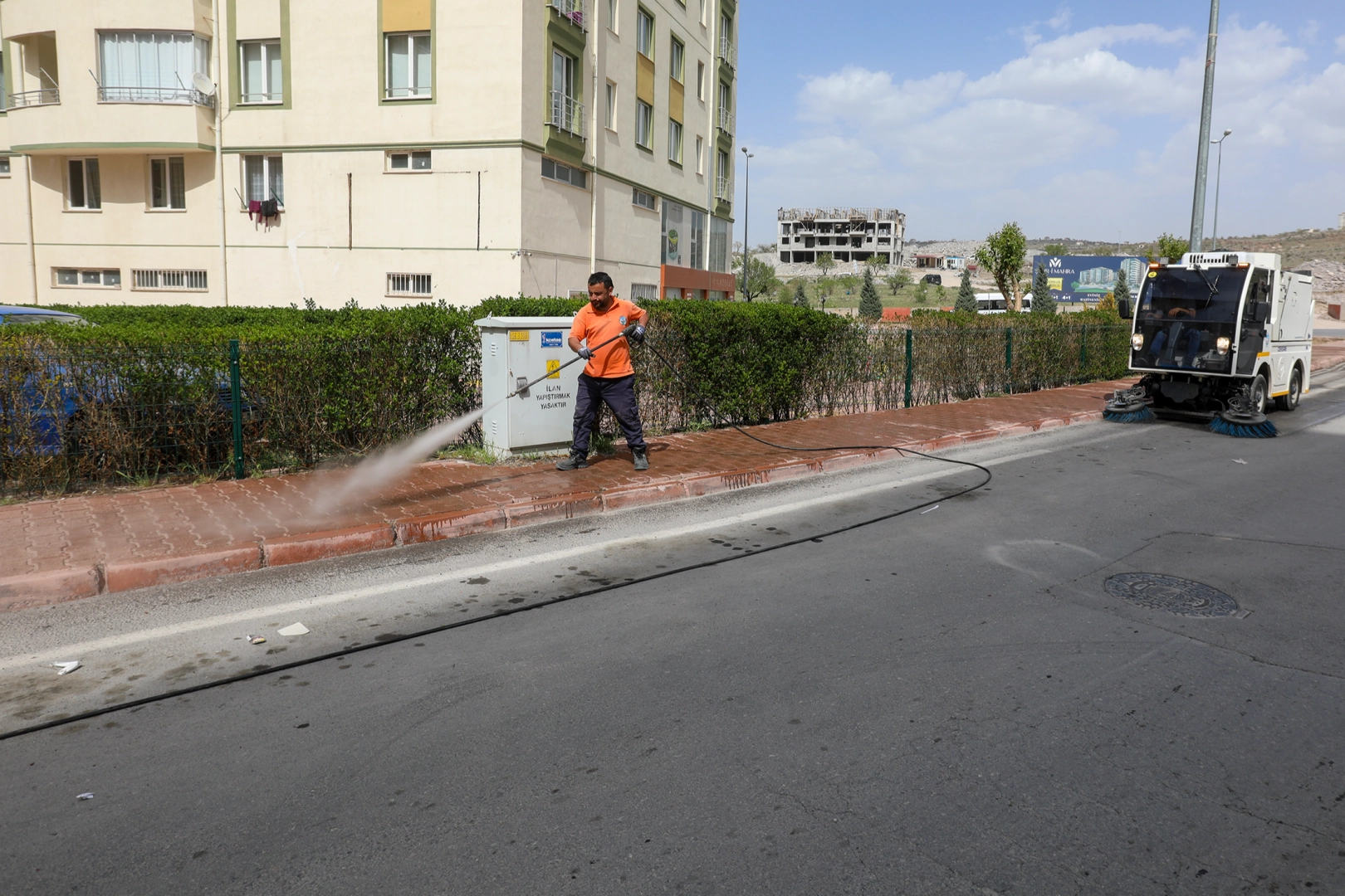Bunlara ek olarak, basınçlı yıkama ve mini yol süpürme aracıyla dar ve küçük yerlerin yanı sıra yol üzerindeki girintili bölgeler de temizlenerek özenli bir temizlik işlemi gerçekleştirilmiş oluyor.