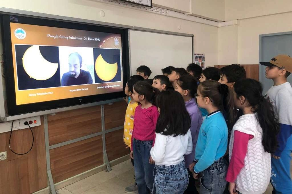 Öte yandan Kayseri Bilim Merkezi’nden yayınlanan canlı yayın, çok sayıda okulda akıllı tahtalara yansıtılan görüntüler sayesinde öğrencilere de izletildi.