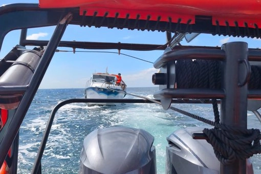 İçinde 5 kişi bulunan tekne, KEGM'ye bağlı TAHLİSİYE-2 hızlı tahlisiye botu tarafından hızla yedeklendi.