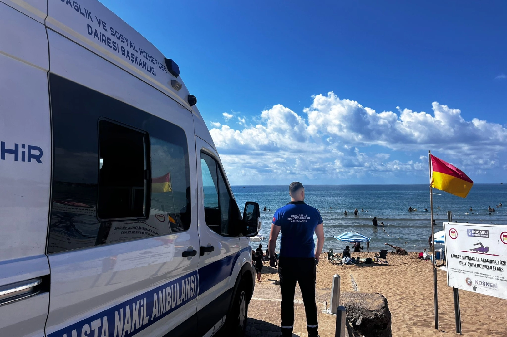 KOCAELİ (İGFA) - Kocaeli Büyükşehir Belediyesi, yaz sezonunun başlamasıyla birlikte sahillerde sağlık hizmetlerini devreye aldı. 15 Haziran-15 Eylül tarihleri arasında Kocaeli Su Kazalarını Engelleme Merkezi (KOSKEM) ile ortak yürütülen çalışmada, Mavi Bayraklı plajlar başta olmak üzere birçok sahilde görev yapan sağlık ekipleri, vatandaşlara güvenli bir tatil ortamı sağlıyor.