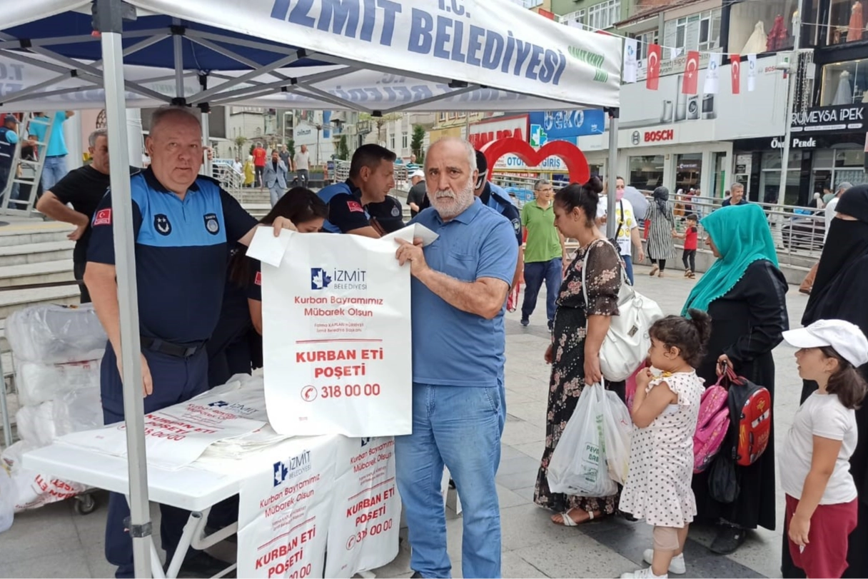 KOCAELİ (İGFA) - İzmit Belediyesi, Kurban Bayramında çevre kirliliğini önlemek, kötü kokunun önüne geçmek ve kurbanlık etlerin muhafaza edilmesi adına arife gününde 40 bin kurban poşeti dağıttı.