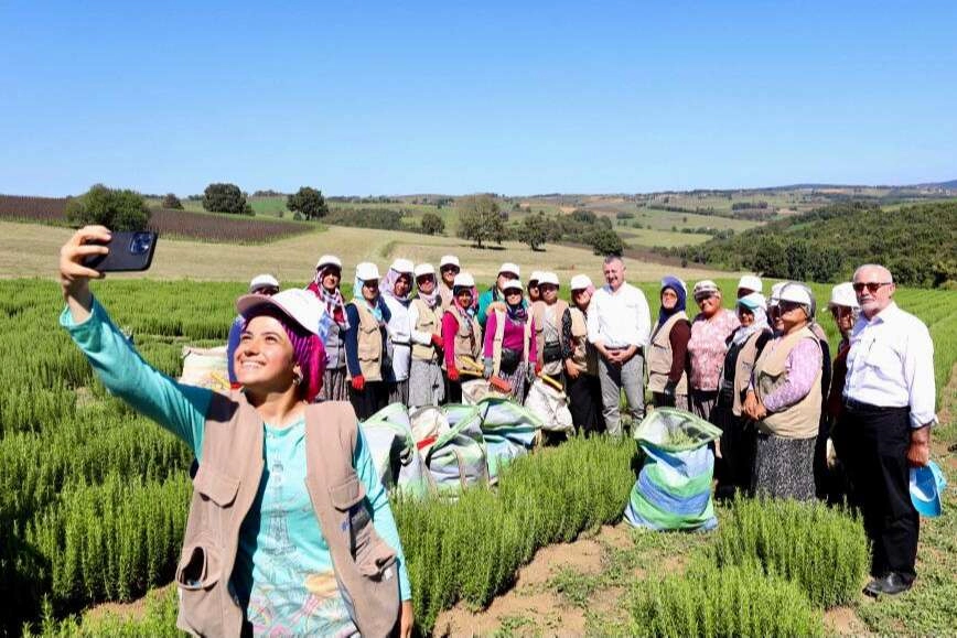 Kadın çiftçilerle birlikte biberiye hasadı yapan Kocaeli Büyükşehir Belediye Başkanı Doç. Dr. Tahir Büyükakın, daha sonra tasarımı ve üretimi tamamen milli ve yerli imkanlarla yaptırılan römork yüklemeli aromatik bitki hasat makinasını kullanarak hasada devam etti. Hasadın hayırlı ve bereketli olması temennisinde bulunan Büyükakın, bakımını özenle yaptığı tarlada kaliteli ve verimli biberiye yetiştiren Beyhan Şen’i tebrik etti. Projede görev yapan teknik ekip ve kadın çiftçilere çalışmalarından ötürü teşekkür eden Başkan Büyükakın, daha sonra çiftçilerle fotoğraf çekildi.