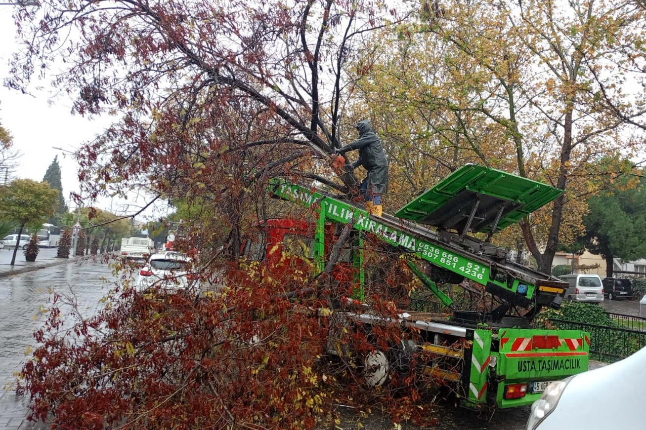 Kent Estetiği Dairesi Başkanlığı ekipleri, merkez ve ilçelerde devrilen ağaçları kaldırırken, dalları kırılan ağaçlara da budama işlemi yaparak güvenli hale getirdi.