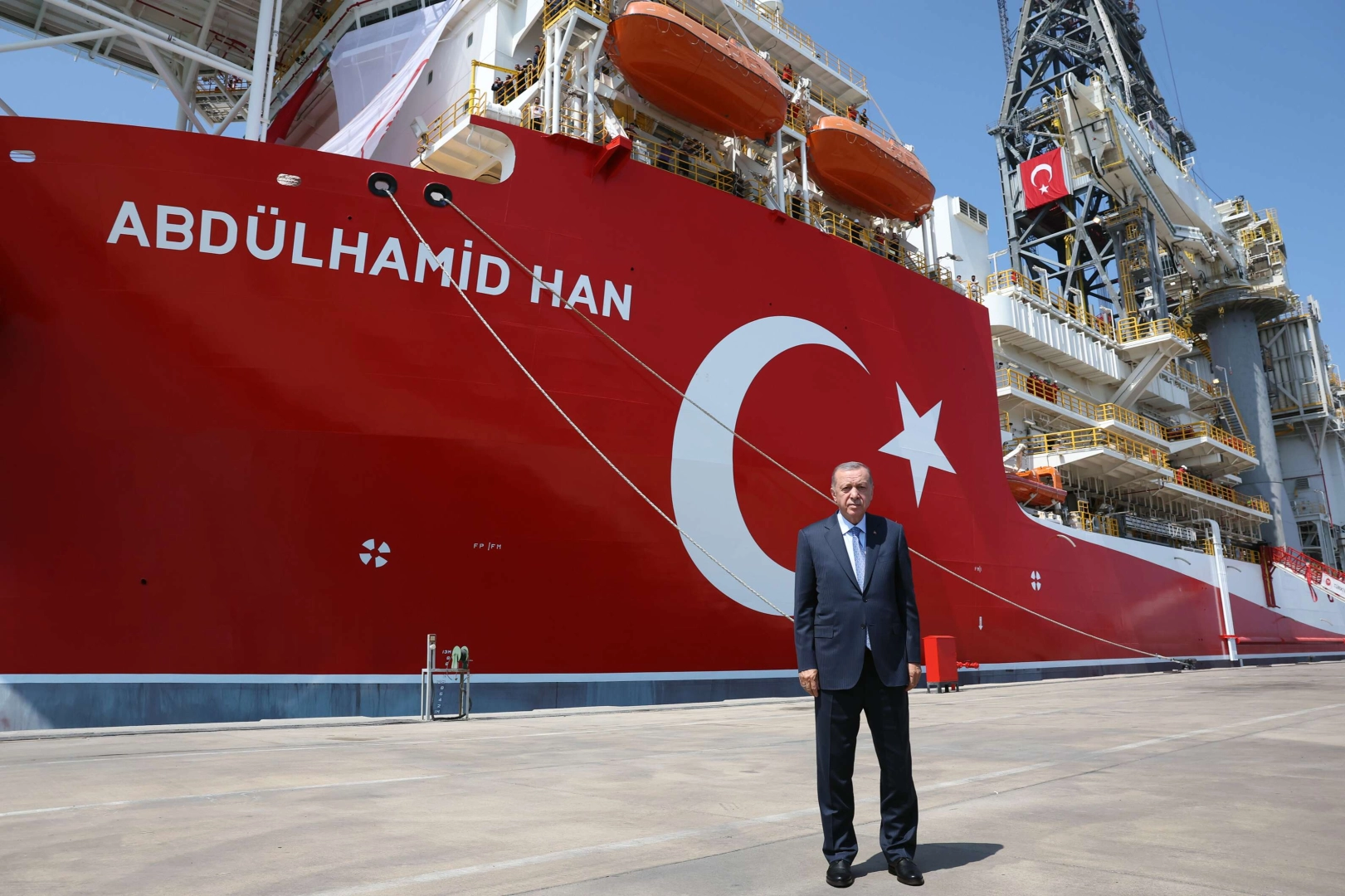 Türkiye'nin dördüncü sondaj gemisi, limanda düzenlenen törenle ilk görev yerine uğurlamak üzere törene katılan Cumhurbaşkanı Recep Tayyip Erdoğan konuşuyor.