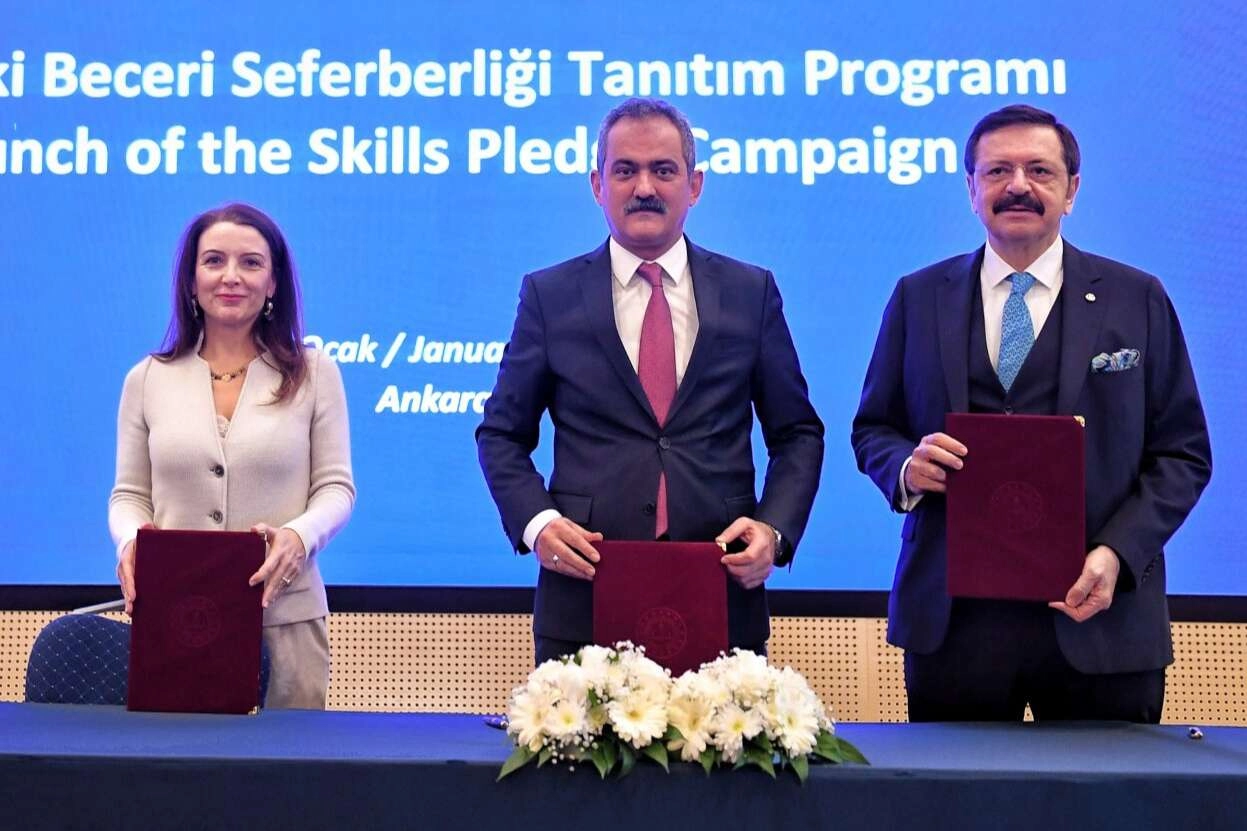 ANKARA (İGFA) -"Mesleki Beceri Seferberliği Protokolü", Millî Eğitim Bakanı Mahmut Özer ile Türkiye Odalar ve Borsalar Birliği Başkanı Rifat Hisarcıklıoğlu ve UNICEF Türkiye Temsilcisi Regina De Dominicis'in katılımı ile imzalandı.