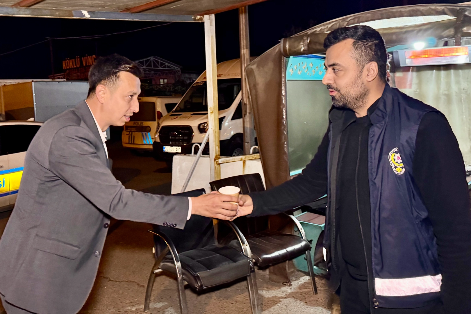 Tural ŞAHBAZLI /KAHRAMANMARAŞ (İGFA) - Ziyaretler kapsamında görev başındaki emniyet mensuplarıyla bir araya gelen Başkan Paçacı ve Başkan Satıcı, polislerle sohbet ederek kolaylıklar diledi. Soğuk havada görev yapan polis memurlarına salep ikramında bulunan ilçe başkanları, polislerin haftasını kutlayarak emeklerinden dolayı teşekkür etti. MHP Dulkadiroğlu İlçe Başkanı Muhammet Paçacı yaptığı açıklamada: “Türk Polis Teşkilatı, 180 yıldır milletimizin huzur ve güvenliğini sağlamak adına gece gündüz demeden fedakârca çalışmaktadır. Tüm emniyet mensuplarımızın Polis Haftası’nı kutluyor, görevlerinde başarılar diliyorum” dedi. MHP Onikişubat İlçe Başkanı Ömer Emrah Satıcı ise konuşmasında şu ifadelere yer verdi: “Bugün, 180 yıllık köklü bir geçmişe sahip olan Türk Polis Teşkilatımızın kuruluş yıl dönümünü kutlamanın onurunu yaşıyoruz. Bizler, millet olarak huzur içinde yaşıyorsak, bunda gece gündüz demeden, yağmur çamur demeden görev yapan kahraman polislerimizin payı çok büyüktür. Sadece suçla mücadele değil; afetlerde, sosyal olaylarda ve her türlü kriz anında milletin yanında duran polisimiz, bizim gururumuzdur. Biz de Milliyetçi Hareket Partisi olarak her zaman emniyet teşkilatımızın yanında olduk, olmaya da devam edeceğiz. Görevleri başında olan tüm polislerimize kolaylıklar diliyor, haftalarını kutluyorum.”
