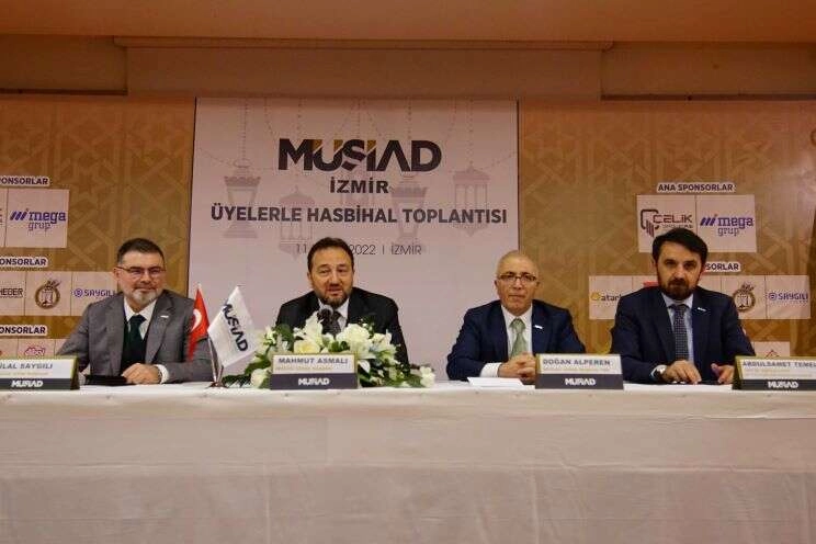 İZMİR (İGFA)- Müstakil Sanayici ve İş Adamları Derneği (MÜSİAD) İzmir Şubesi, MÜSİAD Genel Başkanı Mahmut Asmalı’nın başkanlığında Genel Başkan Yardımcısı Ahmet Doğan Alperen ve Genel Merkez Yurtiçi Teşkilatlanma Komisyonu Başkanı Abdulsamet Temel'in de katılımlarıyla “MÜSİAD İzmir Üyeleri ile Hasbihal Toplantısı" düzenledi.