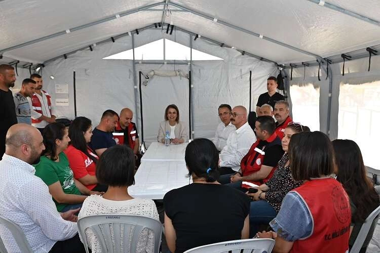 Mehmet UZEL (NEVŞEHİR İGFA) Hatay’da temaslarını sürdüren Nevşehir Valisi İnci Sezer Becel ve Belediye Başkanı Dr. Mehmet Savran, Nevşehir Valiliği öncülüğünde ve Nevşehir İl Millî Eğitim Müdürlüğü koordinesinde Nevşehir Mesleki ve Teknik Anadolu Lisesi öğretmen ve öğrencileri tarafından üretilen konteynerlerde eğitim faaliyetlerinin sürdüğü Defne Orhanlı Çadırkenti ziyaret etti.