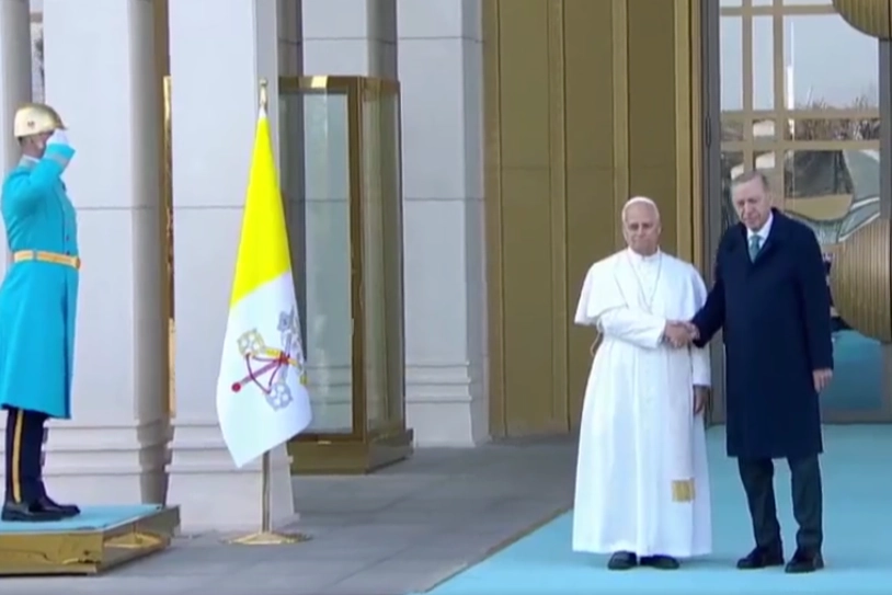 — Recep Tayyip Erdoğan (@RTErdogan) November 27, 2025Cumhurbaşkanlığı Külliyesi’nde, Cumhurbaşkanı Erdoğan tarafından resmi törenle karşılanan Papa, Türkiye ile Vatikan bayrakları önünde tokalaşarak, basın mensuplarına poz verdi.