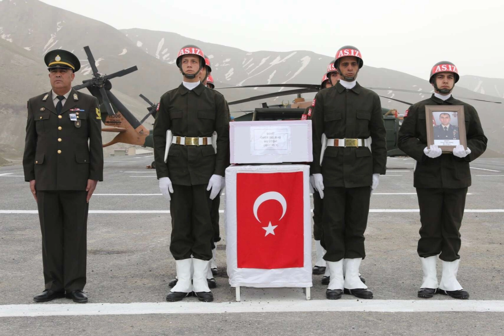 HAKKARİ (İGFA) - Pençe-Kilit Operasyonu bölgesinde el yapımı patlayıcının infilak etmesi sonucu yaralanan ve kaldırıldığı hastanede şehit olan Muhabere Üsteğmen Ömer Delibaş için Hakkari'de tören düzenlendi.