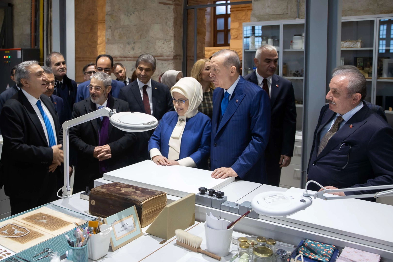 "Zaman içinde ciddi bir tahribata uğrayan bu abide eseri dönüştürmek istediğimiz çalışmalar sonunda bitti" diyen Cumhurbaşkanı Erdoğan, "Burayı bir kültür merkezi olarak planladık. Haftanın her günü, 24 saat olarak gençlerimize hizmet verecek. 110 bin metrekarelik yapıya kavuşmuş bulunuyoruz. İlk etapta 2 milyon kitapla hizmete başlıyoruz. Kitap sayımız zaman içinde artacak" dedi.