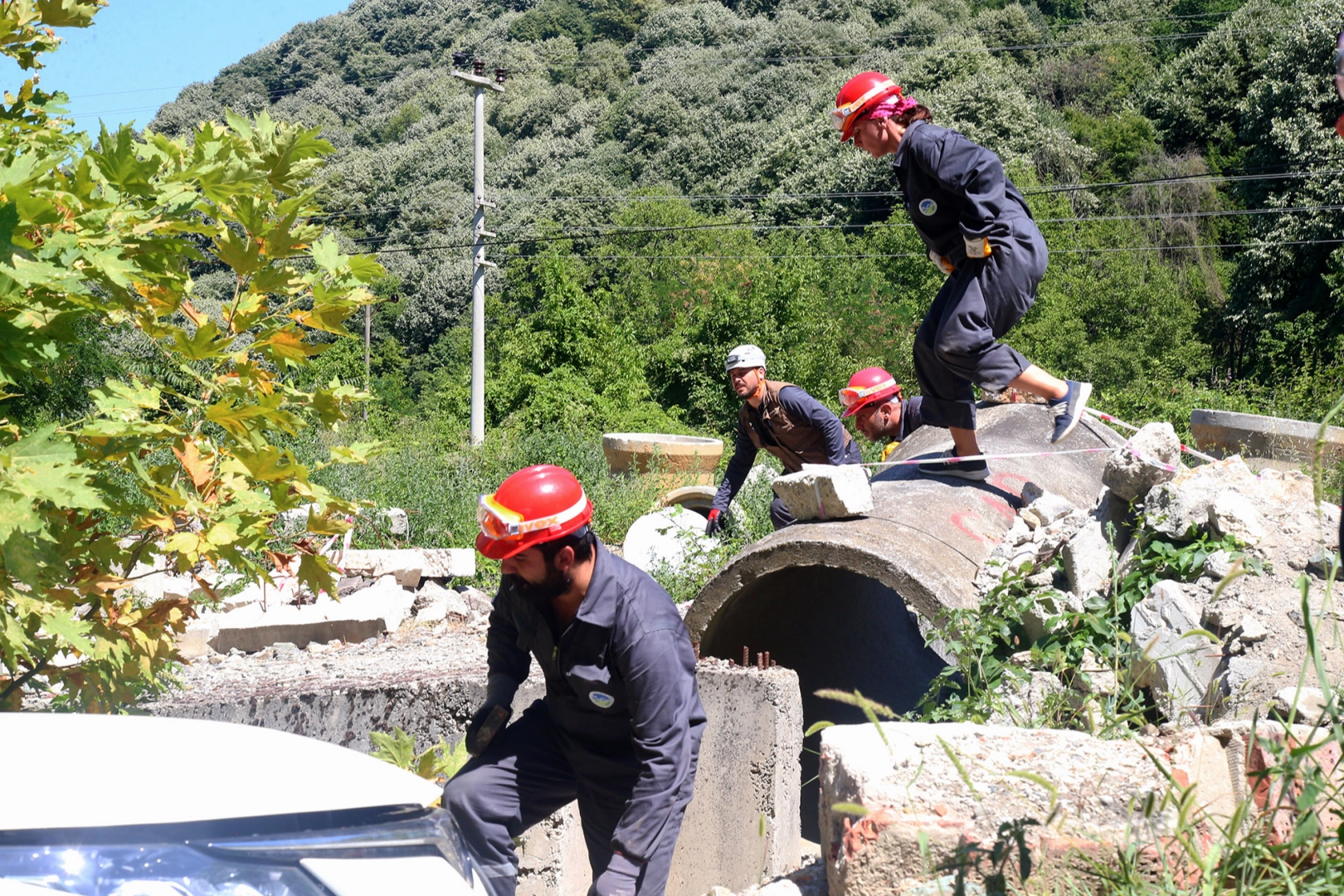 Yaklaşık dağcılık tekniklerinin tamamına hâkim olan ekip 25 metre yükseklikten halatlarla yaralı tahliye etti. Bunların yanı sıra araç içinden kazazede kurtardı. Öte yandan tatbikatta bunların yanında enkaz altındakilere ulaşmak için kullanılan ‘sismik dinleme’ ve ‘akustik dinleme’ teknikleri uygulandı.