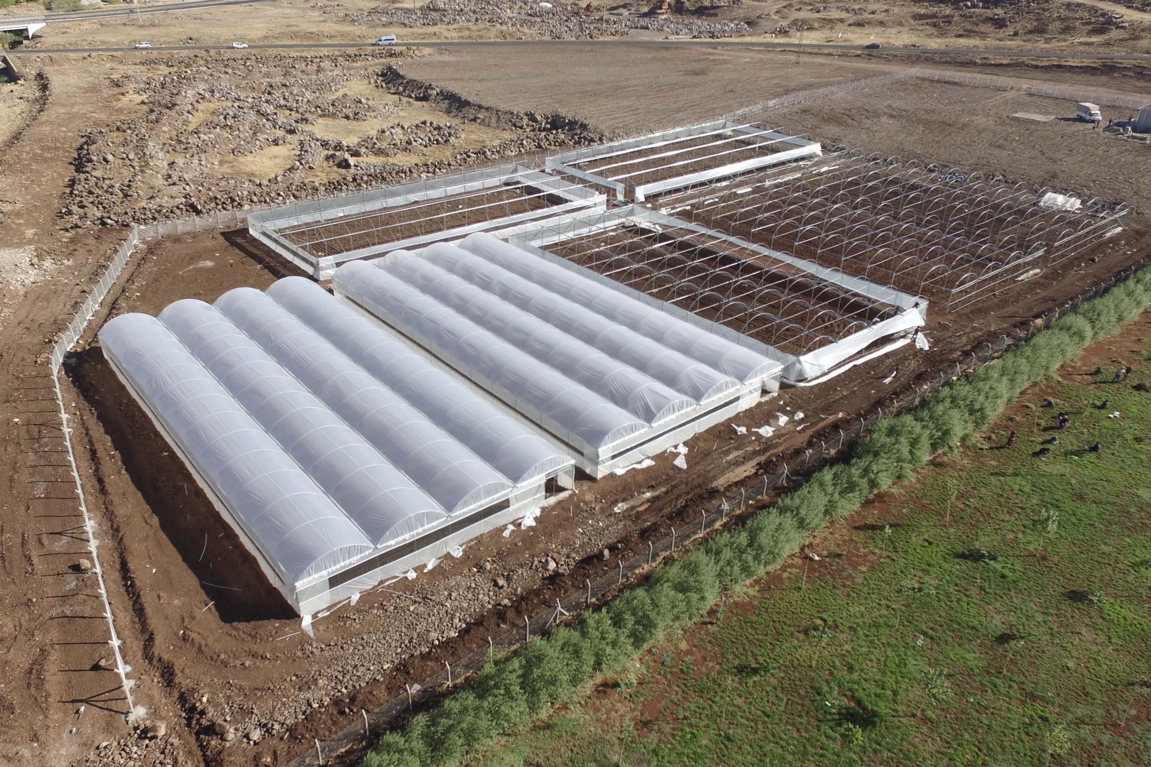Kooperatif çalışmaları kapsamında bir süre önce yapımına başlanan ‘Sera Projesi’nde çalışmalar devam ederken, demir aksamı tamamlanan alanda ekiplerce branda serimine başladı.