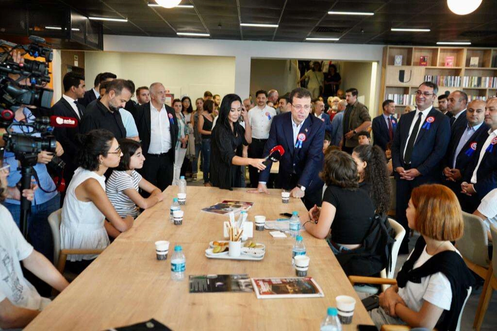 Programın ev sahibi İBB başkanı Ekrem İmamoğlu, 30 Ağustos kutlamasında söylediği sözü tekrar anımsatarak başladığı konuşmasında Cumhuriyet’in ikinci yüzyılında yeni zaferler elde edilmesi gerektiğinin altını çizdi. Bu zaferlerin yolculuğunun başka olduğunu belirten İmamoğlu , “Artık bu çağda zaferin anlamı benim açımdan bilgide, kültürde, sanatta, edebiyatta, yaşam kalitesinde, sporda ama elbette dünyada sizi vitrine taşıyan başka unsurlarıyla beraber, teknolojide, bilimde yeni buluşlarda, icatlarda bunların varlığı bizim esas zaferlerimiz olacak önümüzdeki yüzyılda… Bunu başarabilecek nitelikte bir toplumuz biz. Bu genlerimizde var. Yeter ki buna zemin hazırlayalım. Yeter ki bu karakterimizi ortaya koyalım. Ortaya çıksın. Bunun olgunlaşması için de insanları özgür kılan, insanları bilgiyle buluşturan ve özgün fikirleriyle hayatlarına devam etmelerini sağlayan ortamları var edelim. Kütüphane tam da o noktalardan bir tanesi” dedi.