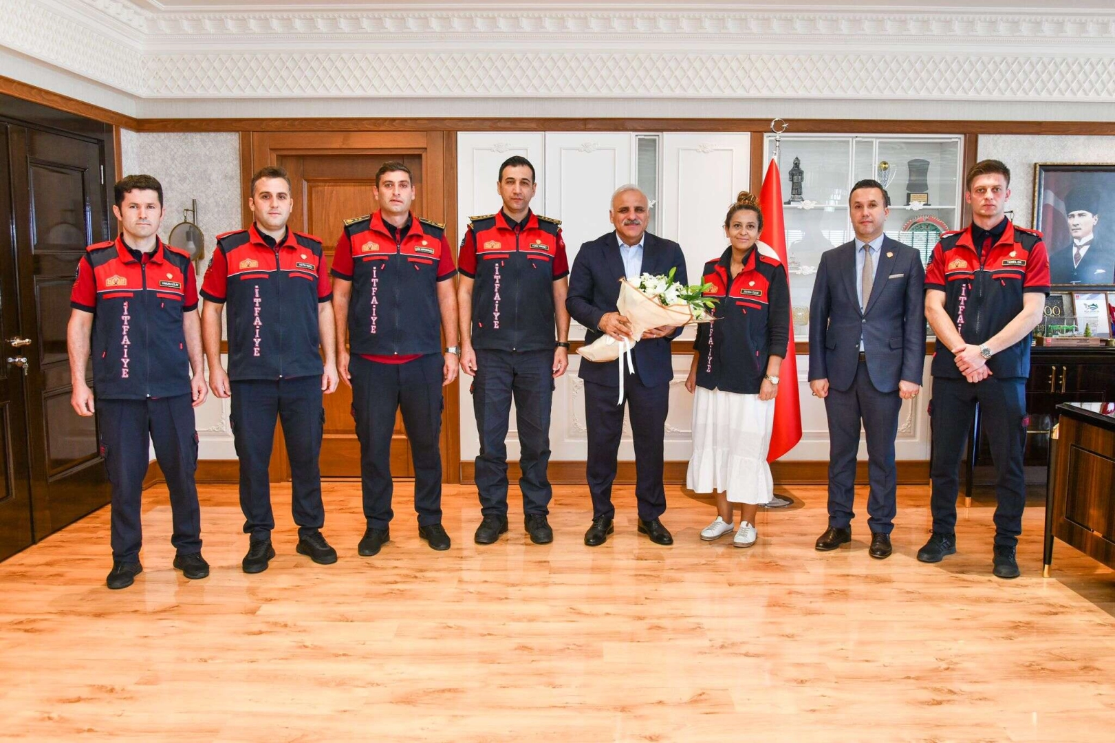 TRABZON (İGFA) - Trabzon Büyükşehir Belediye Başkanı Murat Zorluoğlu, İtfaiye Haftası dolayısıyla İtfaiye Dairesi Başkanı Mehmet Olcay Bal ve personelini kabul etti. İtfaiye Dairesi Başkanı Bal, Başkan Zorluoğlu’na yürütülen çalışmalarla ilgili detaylı bilgi verdi. Ziyaretin sonunda Başkan Zorluoğlu’na İtfaiye Dairesi Başkanlığı personeli tarafından çiçek ve itfaiye rozeti takdim edildi. ÖĞRENCİLER İTFAİYECİ OLDU Öte yandan Trabzon Büyükşehir Belediyesi İtfaiye Dairesi Başkanlığı ekipleri, İtfaiye Haftası kapsamında 18 ilçede 23 adet ilkokulu ziyaret ederek öğrencilerle bir araya geldiler. Öğrencilere itfaiyecilik mesleğini sevdirmek ve farkındalık yaratmayı isteyen Büyükşehir ekipleri, itfaiye kıyafeti giydirdikleri miniklere, yangınlarda kullanılan araçları uygulamalı olarak gösterdiler. Etkinlikler sonunda öğrencilere günün anısına boyama kitapları ve yapboz hediye edildi.