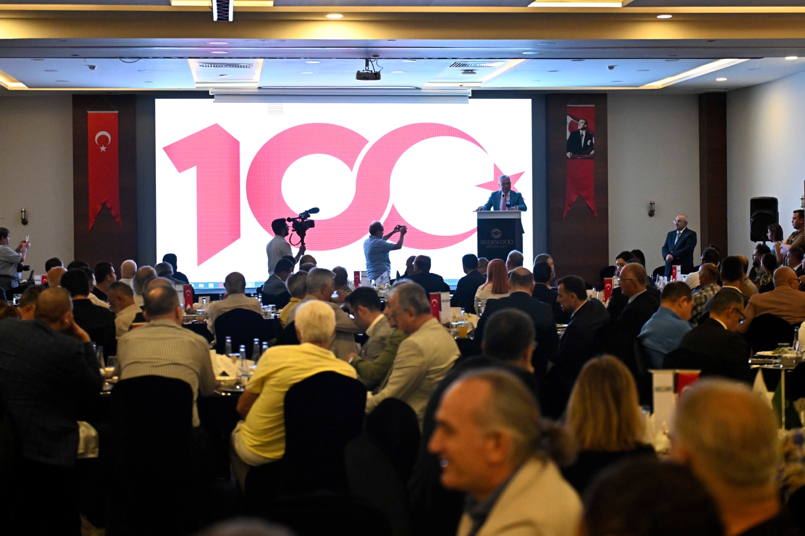 ANTALYA (İGFA) - Bu yıl cumhuriyetin kuruluş yıldönümü temasıyla gerçekleşen yemekte konuşan Muratpaşa Belediye Başkanı Ümit Uysal, turizmcilere “Sizler olmazı oldurmuş, şartlara meydan okumuş, bütün istikrarsızlıkların ortasında büyük istikrar üretebilmiş bir sektörün liderlerisiniz. Türkiye’mizin, şehrimizin yüz akısınız” diye seslendi.