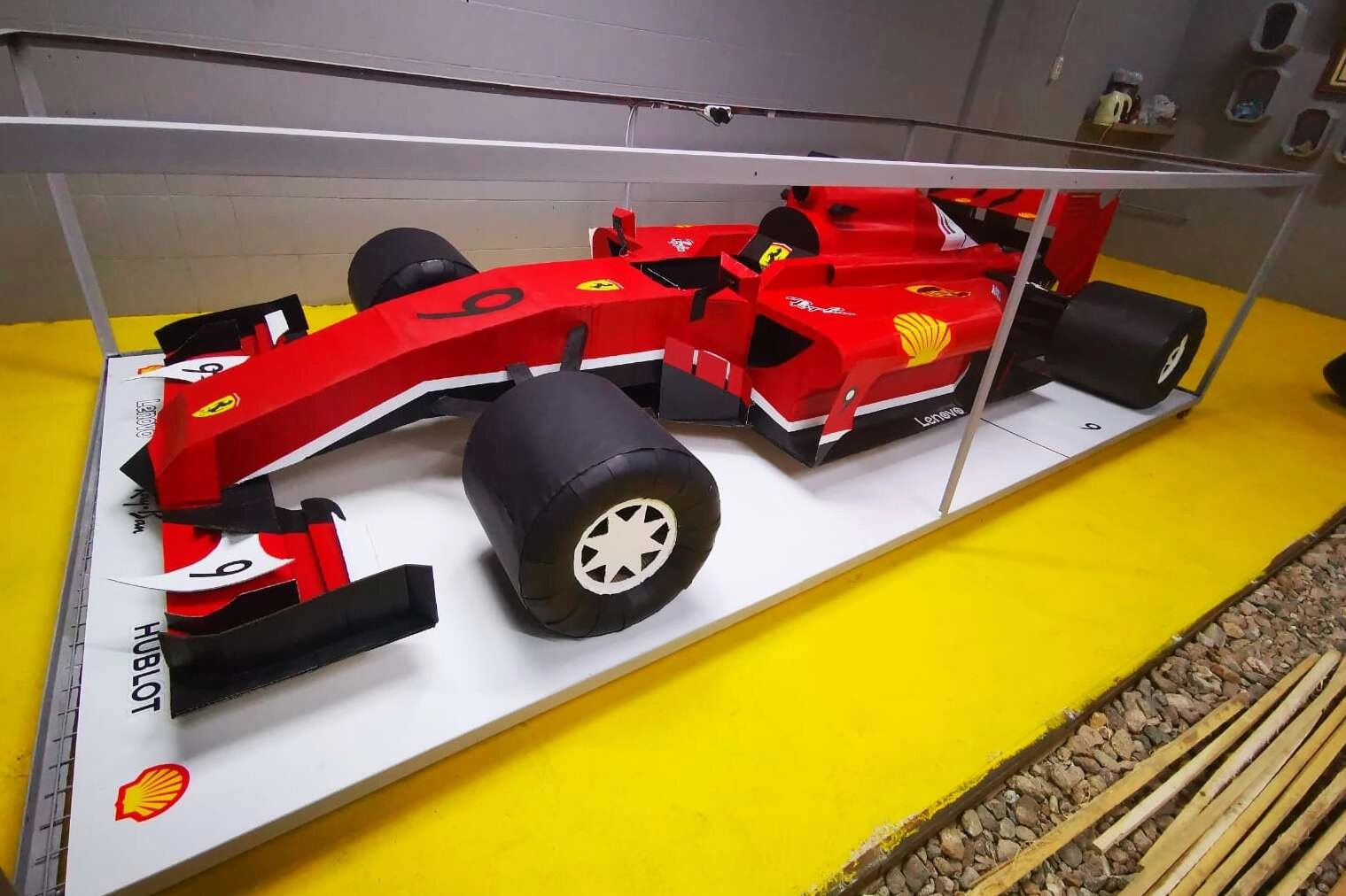 Bu aracı oluşturmak için tam 40 metrekare karton gittiği ve ölçülerinin 190x400 cm olduğuna değinen Demirkırkan, "Bu Formula 1 aracını birleştirmek için tam 100 adet silikon mum çubuk harcandı. Park Afyon yanı sanayi sitesinde yer alan Garage Kybele isimli yeni şubemizde Formula 1 aracını ziyaretçilerimiz ücretsiz olarak görebilirler" dedi.