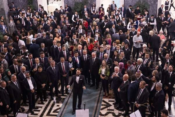 ANKARA (İGFA) - Meclis başkanlarının yasama yılı açılışı dolayısıyla geleneksel olarak verdiği akşam resepsiyonu, salgın nedeniyle iki yıl aranın ardından yeniden düzenlendi.