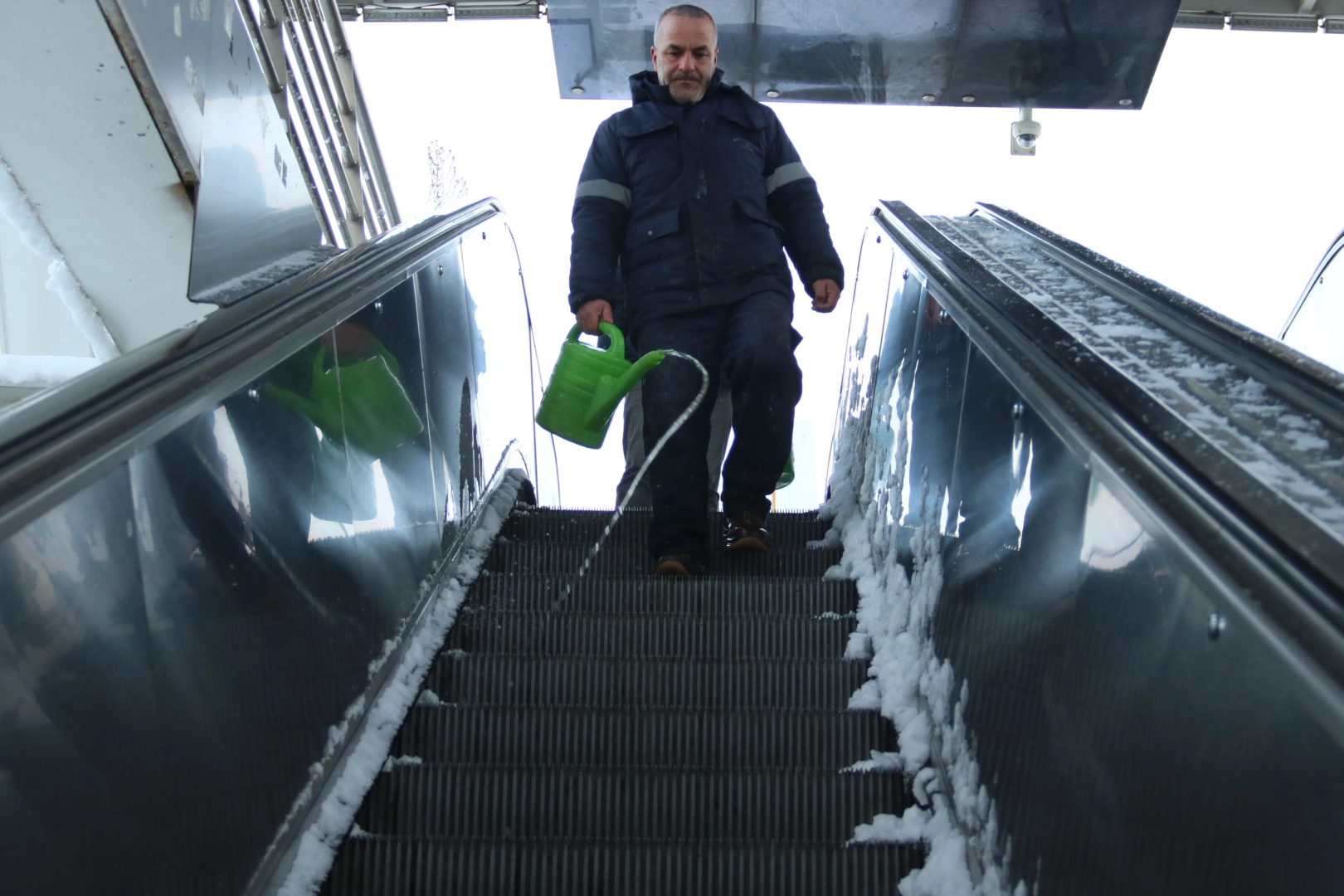 Teknik olarak “sürekli”, “yavaş” ve “dur-kalk” modlarında çalışan yürüyen merdivenler, olumsuz kış koşulları nedeniyle donma riski taşıyan mekanik aksamlarının zarar görmemesi için 7/24 çalışır konumda hizmet verecek şekilde ayarlandı. Böylece soğuk havaların etkisiyle herhangi bir arıza yaşanmaması için merdivenlerin mekanizmalarının sürekli aktif kalması sağlanacak.