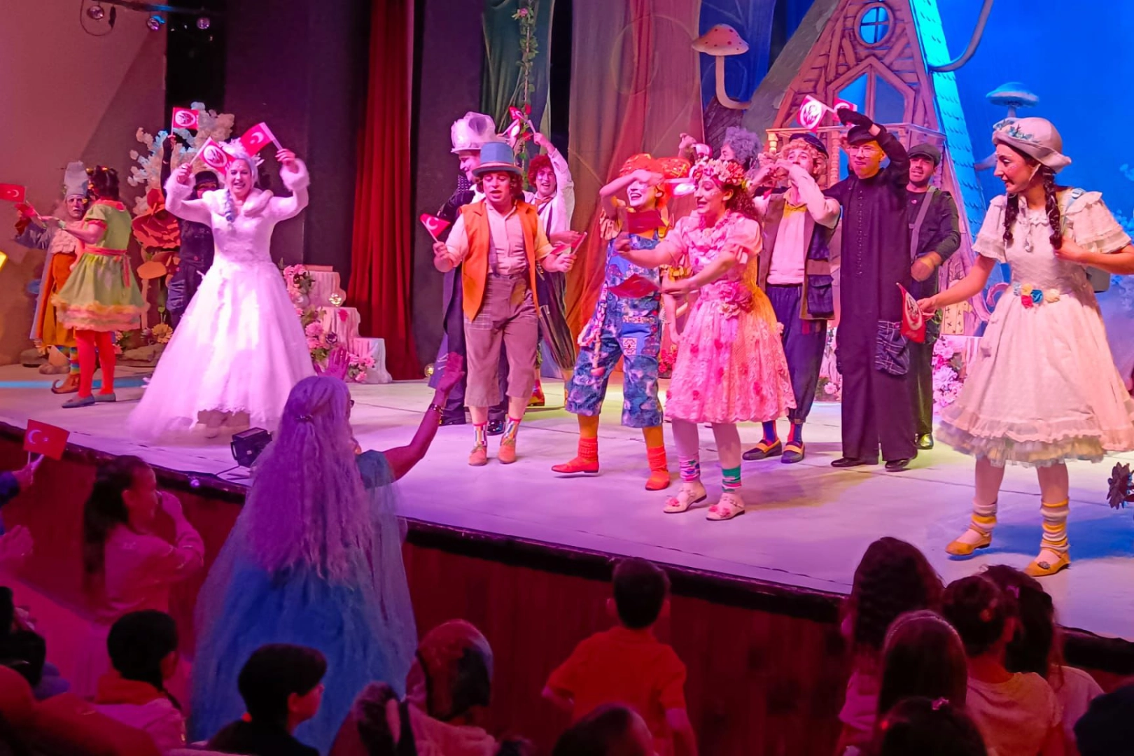 Oyunun sonunda oyuncular sahneden inerek çocuk seyircilerle bir araya geldi. Minik izleyicilerin büyük mutluluk yaşadığı buluşmada renkli ve neşeli görüntüler oluştu. Çocukların yoğun ilgisi ve sevinci, bayram coşkusunu daha da anlamlı hale getirdi.
