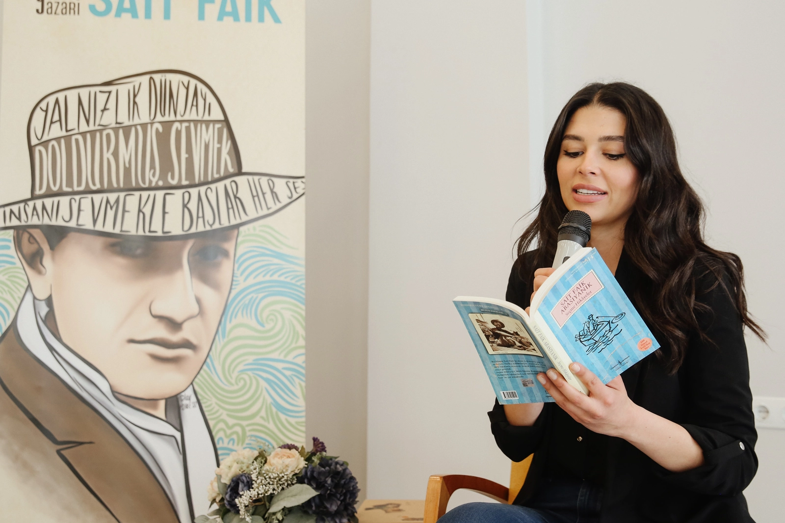 Çocukların ilgiyle takip ettiği etkinlikte Sait Faik’in, Seçme Hikâyeler kitabından “Bir İlkbahar Hikâyesi”ni okuyan Ela Yörüklü, onların merak ettiği soruları da yanıtladı.
