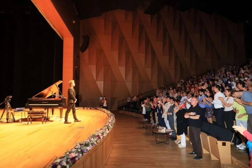 DENİZLİ (İGFA) - Denizli Büyükşehir Belediyesi, son dönemde yaptığı kendine has yorumları ve özgün besteleriyle dünya müzik camiasında gelecekte adından çokça söz ettirecek isim olarak anılan Denizlili genç müzisyen Görkem Ağar’ı ağırladı. Büyükşehir Belediyesi Nihat Zeybekci Kongre ve Kültür Merkezi'nin Mehmet Gazi Salonu'nda düzenlenen piyano resitaline sanatseverler yoğun ilgi gösterdi. Piyano resitalinde genç müzisyen Görkem Ağar, solo piyano bestelerinin yanı sıra, Türk Halk Müziği’nden Amerikan Cazına uzanan geniş bir yelpazede düzenlemelerini hemşehrileriyle paylaştı. Sanatseverler unutulmaz bir müzik ziyafetine şahitlik ederken, konser sonunda genç müzisyen uzun süre ayakta alkışlandı. Başkan Zolan’dan tebrik Denizli Büyükşehir Belediye Başkanı Osman Zolan, resitale katılan sanatseverlere teşekkür etti. Genç müzisyen Ağar’ın ailesini sahneye davet ederek, böylesine yetenekli bir evlat yetiştirdikleri için teşekkür eden Başkan Zolan, “Görkem’i tebrik ediyorum. Almış olduğunuz eğitim yetenekle birleşmiş. Çok güzel bir akşam oldu. Allah yolunu açık etsin, hep başarılı ol inşallah” diye konuştu. Başkan Zolan daha sonra günün anısına genç müzisyen Ağar’a Denizli horoz figürlü plaket verdi.