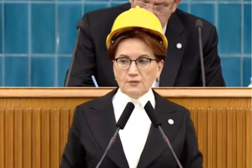 Kürsüye madenci baretiyle çıkan Akşener, konuşmasında hükümeti ve yöneticileri tedbir almamakla eleştirdi.