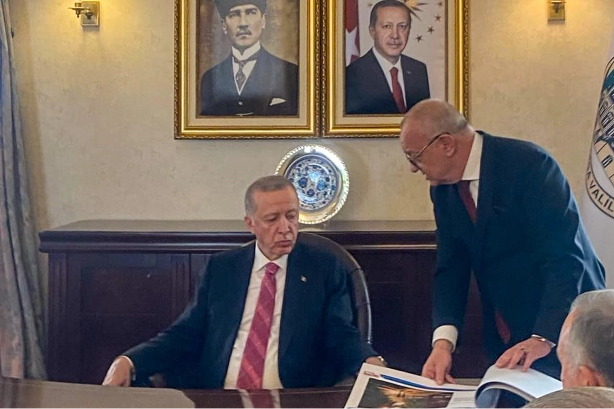 MANİSA (İGFA) - Manisa Büyükşehir Belediye Başkanı Cengiz Ergün, Cumhurbaşkanı Recep Tayyip Erdoğan’ın Manisa’da gerçekleştirdiği miting sonrasında Manisa Valiliği’nde, Cumhurbaşkanı Recep Tayyip Erdoğan ile görüşme gerçekleştirdi. Görüşmede, Manisa’da hayata geçirilecek dev projeler değerlendirildi.
