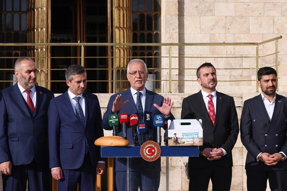 Aydın, konuşmasının ardından basın mensuplarına ekmek dağıttı.