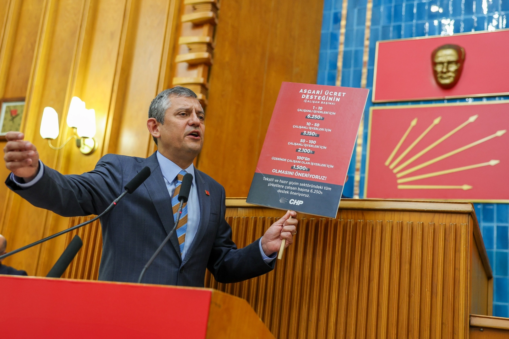 Enflasyon ve büyüme oranlarına dayandırdığı bu talebin asgari ücretlilere “nefes aldıracağını” ifade eden Özel, devletin artan SGK primlerinden 51,5 milyar liralık teşvikle işverene sadece 1000-1500 liralık yük kalacağını belirtti. “Küçük esnaf ve tekstile 6 bin 250 lira teşvik öneriyoruz. Asgari ücretlileri bu mücadeleye destek vermeye çağırıyoruz” dedi.