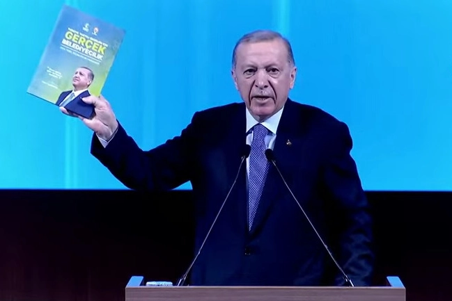 Konuşmasındaki satır aralarında 'gerçek belediyecilik' vurgusundan ayrılmayan Erdoğan, sözlerini de "Gerçek Belediyecilik' başlıklı seçim beyannamesini göstererek noktaladı.