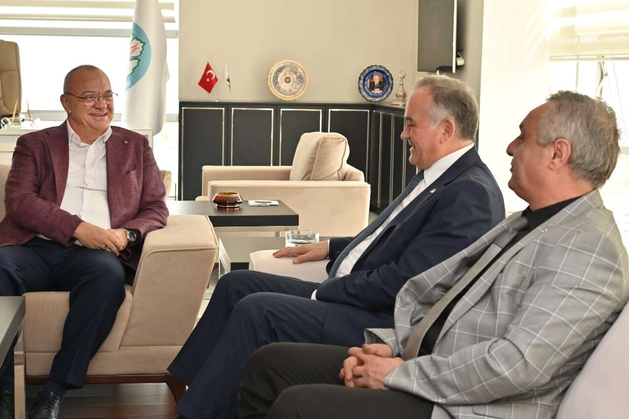 MANİSA (İGFA) - MHP Grup Başkanvekili Erkan Akçay, MHP Manisa İl Başkanı Murat Öner ile birlikte Manisa Büyükşehir Belediye Başkanı Cengiz Ergün’ü MASKİ’deki makamında ziyaret etti.